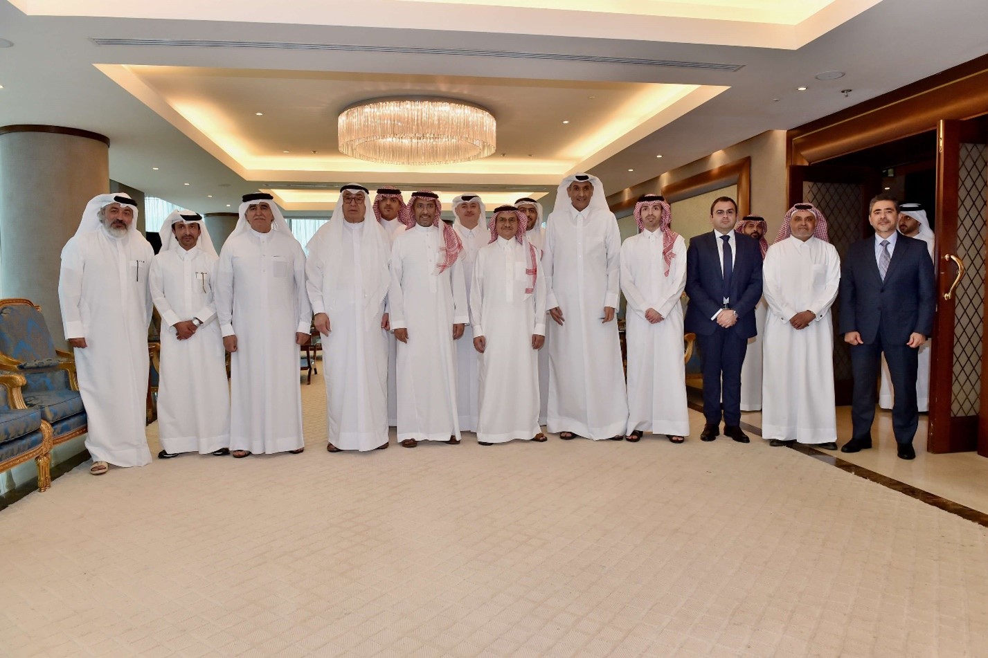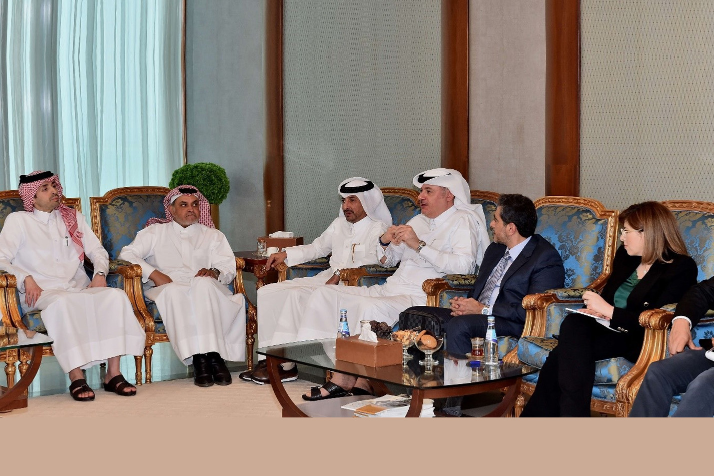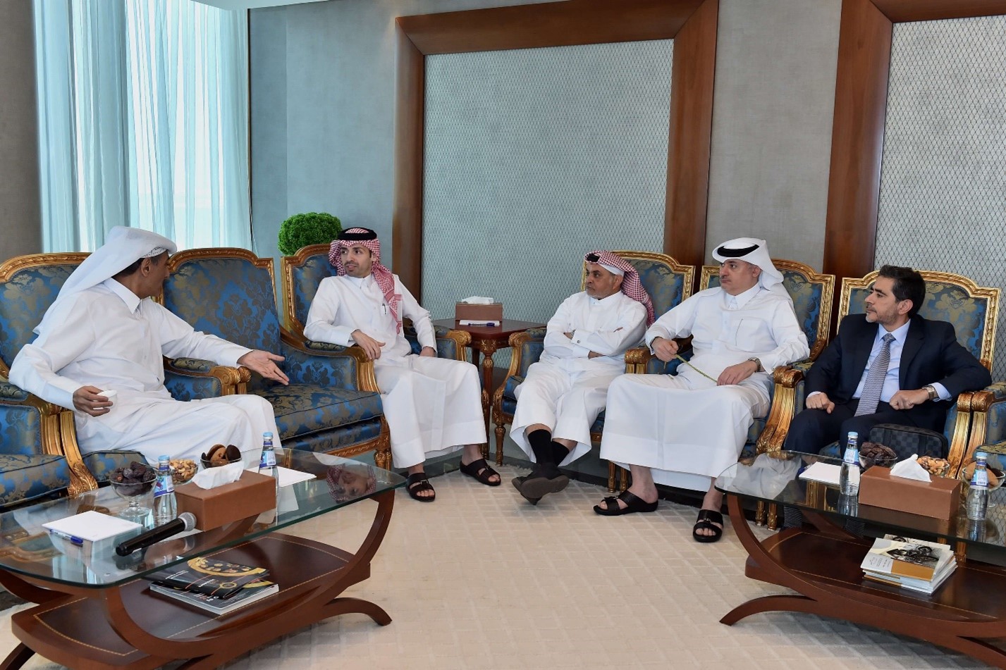 A meeting was held between Mr. Dafer M Hallawa (Chairman of Tadmur Holding) and the delegation from the Saudi Ministry of Industry and Mineral Resources, in the presence of His Excellency Mr. Bandar Ibrahim Al Khorayef (Saudi Minister of Industry and Mineral Resources), at the headquarters of the Qatar Businessmen Association.